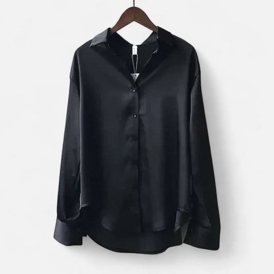 Satinbluse mit Knopfleiste und klassischem Kragen