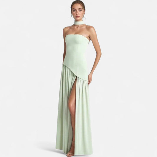 Elegantes Abendkleid mit Schlitz und Trägerfreiem Design