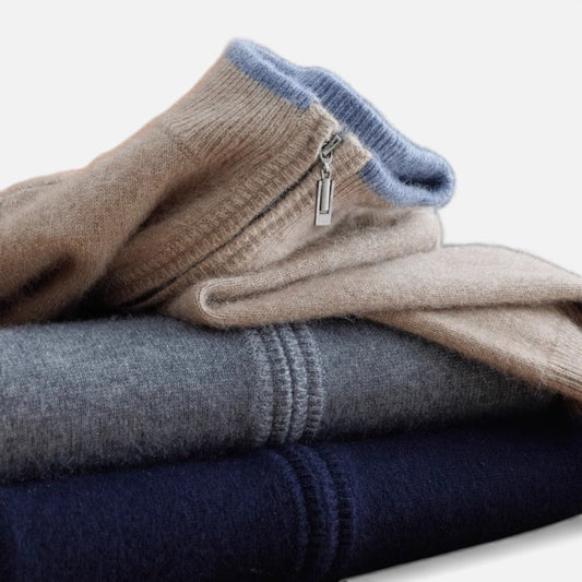 Herren Kaschmir Strickpullover mit Halbreißverschluss