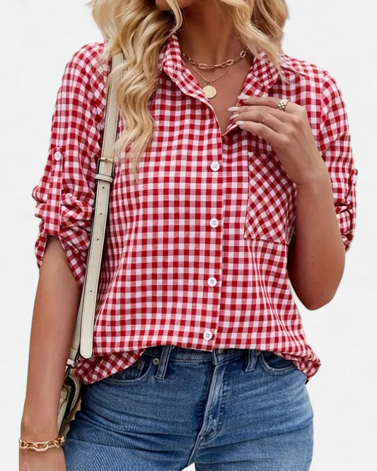Kariertes Hemd mit Brusttasche und Knopfleiste