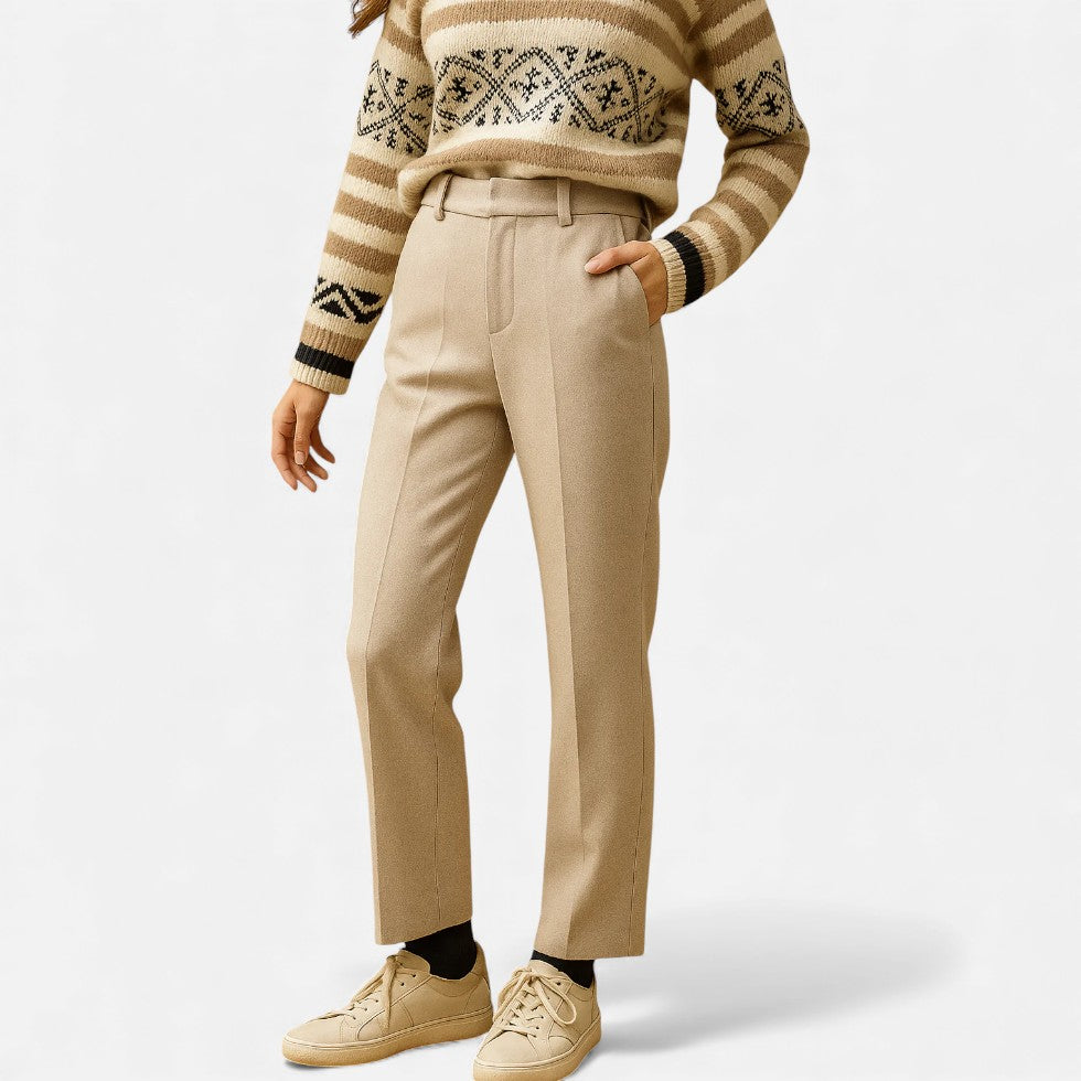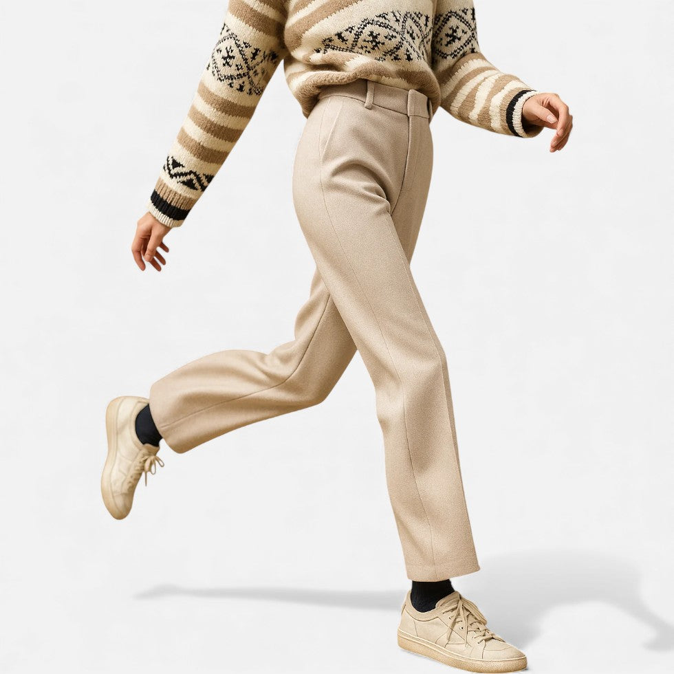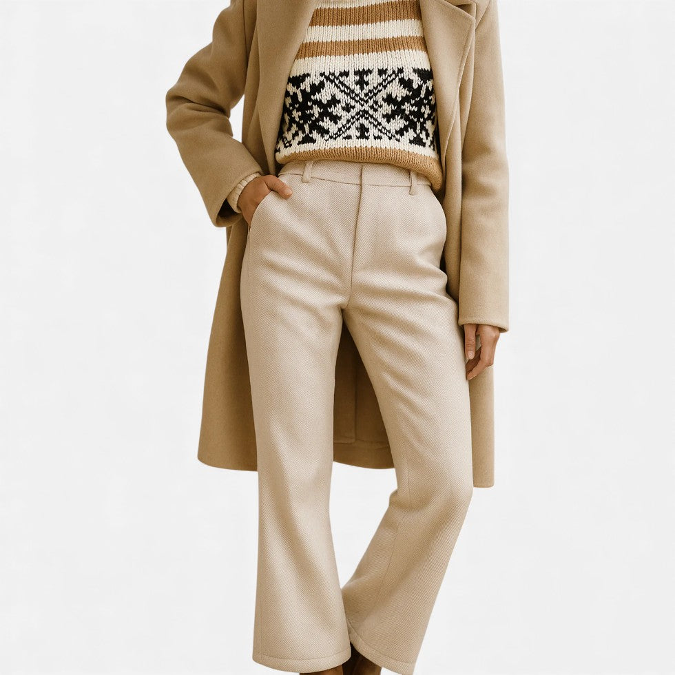 Diese Stoffhose vereint eine klare, moderne Linienführung mit einem klassischen Fischgrätenmuster. Die glatte Struktur und der gerade Schnitt verleihen dem Look eine gepflegte und vielseitig kombinierbare Ausstrahlung. Durch die angenehme Materialmischung eignet sich die Hose ideal für Büro, Alltag oder schlichte Abendoutfits.