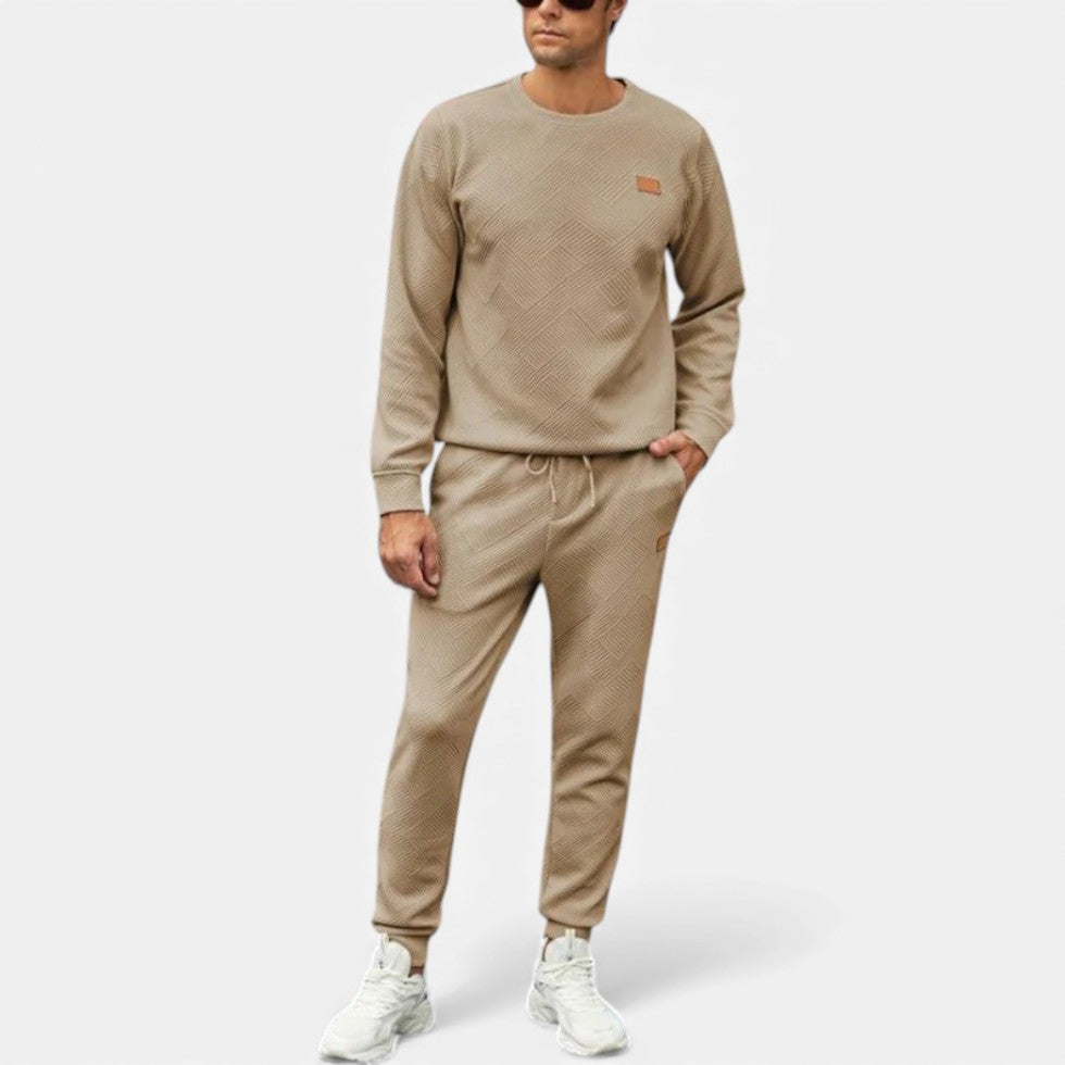 Dieser Herren Trainingsanzug verbindet ein modernes Strukturmaterial mit einer entspannten Passform, die sich angenehm im Alltag tragen lässt. Das Set aus Oberteil und Hose wirkt klar, minimalistisch und vielseitig einsetzbar. Ideal für entspannte Tage zu Hause, kurze Wege oder ein sportlich-schlichtes Outfit.