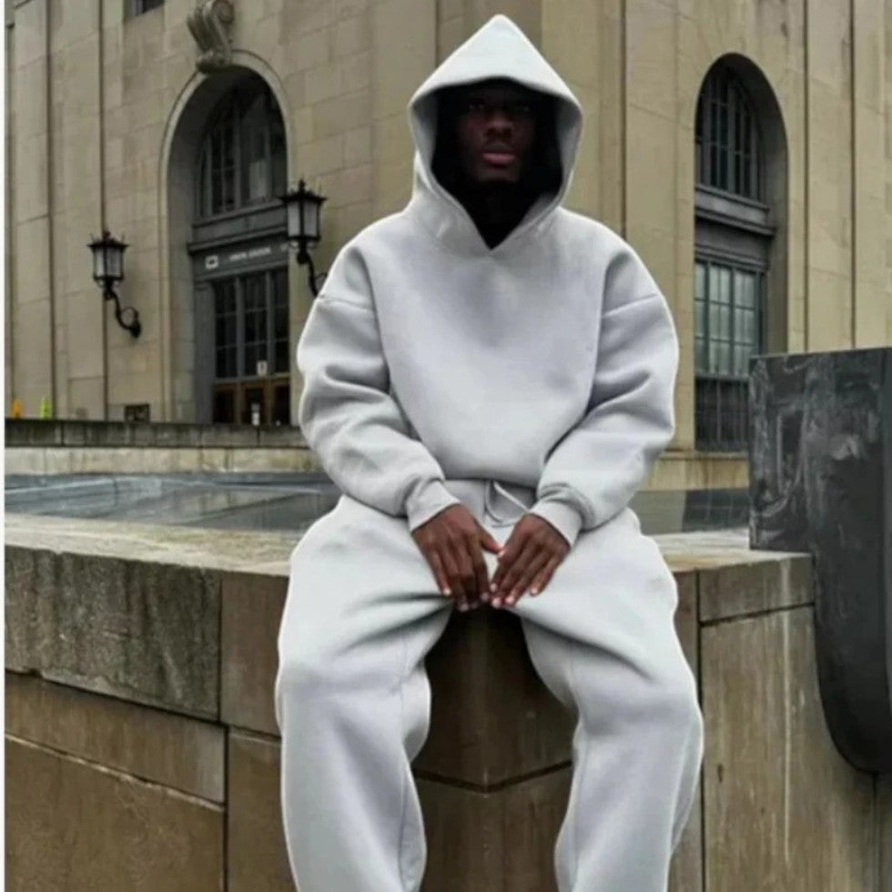 Dieses Trainingsset kombiniert einen Hoodie mit entspannter Passform und passende Jogginghosen für einen modernen, urbanen Look. Das weiche Material fühlt sich angenehm auf der Haut an, während der lockere Schnitt viel Bewegungsfreiheit ermöglicht. Ideal für entspannte Tage, schnelle Erledigungen oder einen sportlichen Streetstyle.