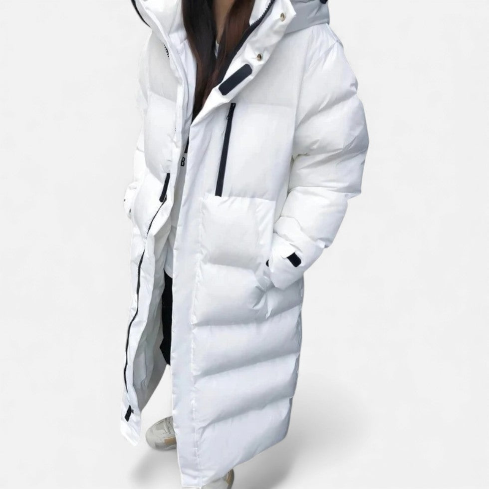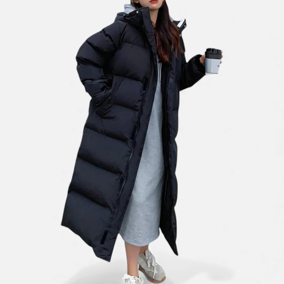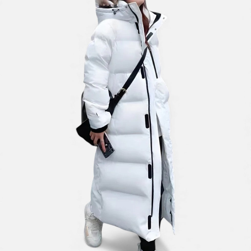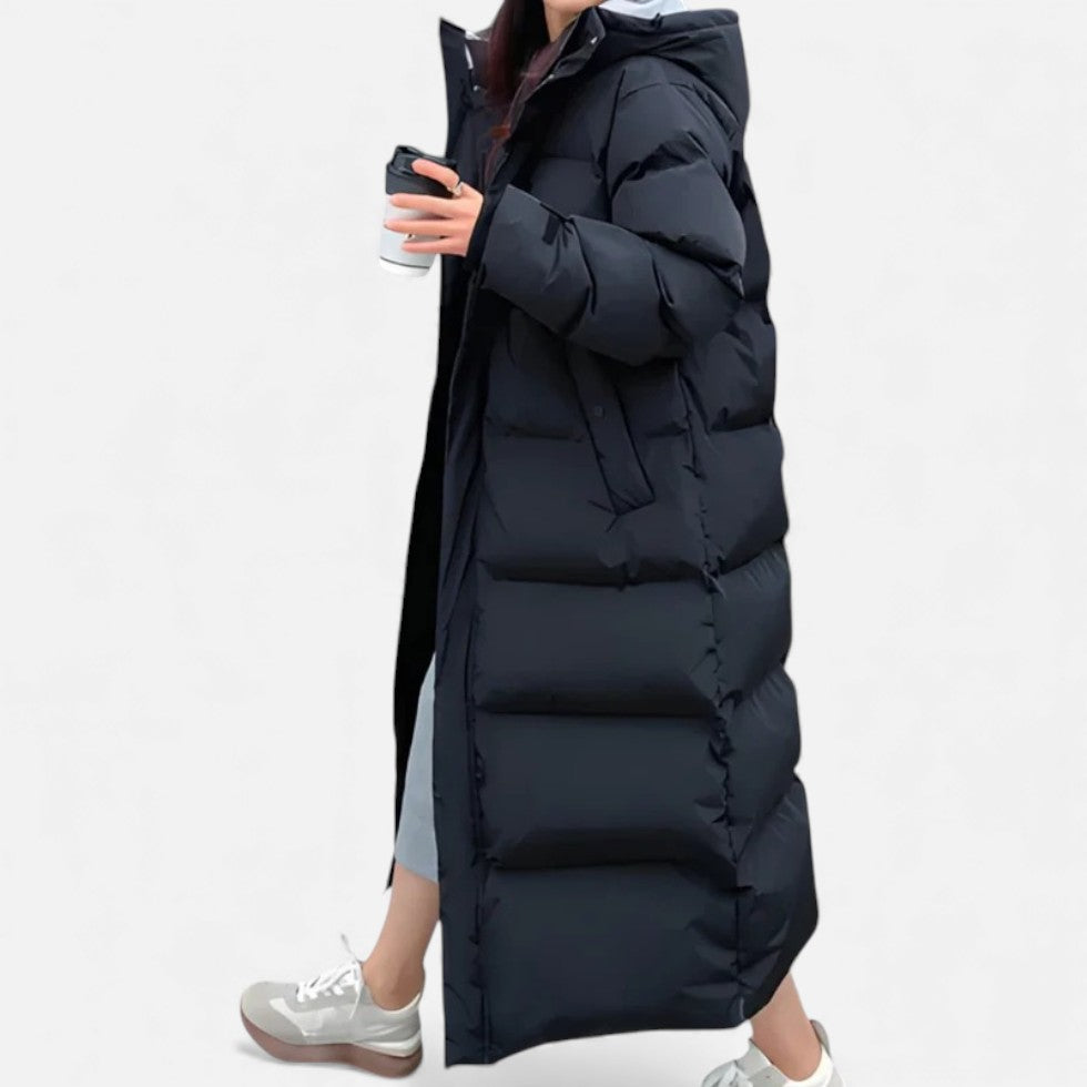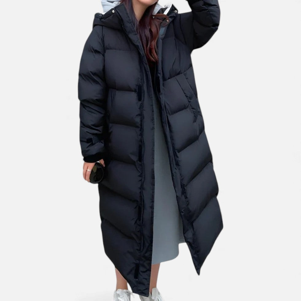 Langer Steppmantel mit Kapuze