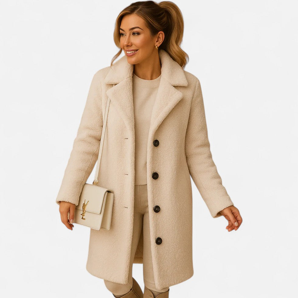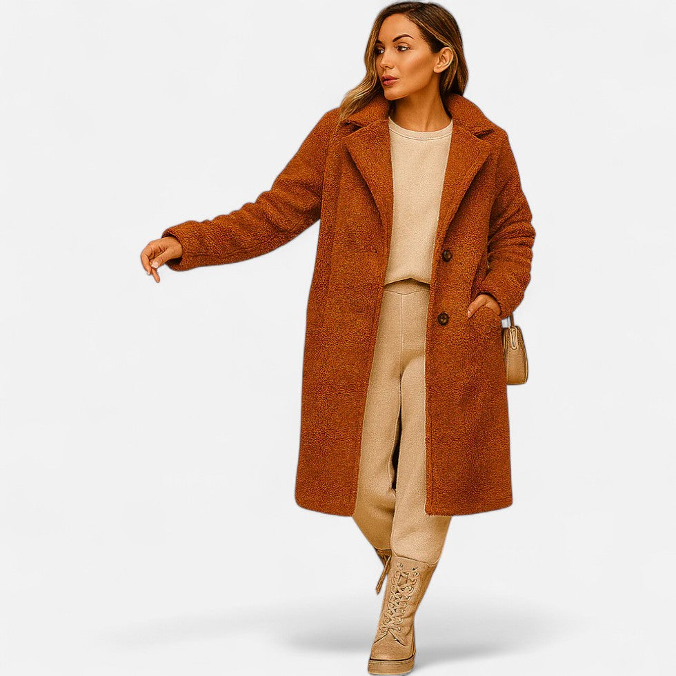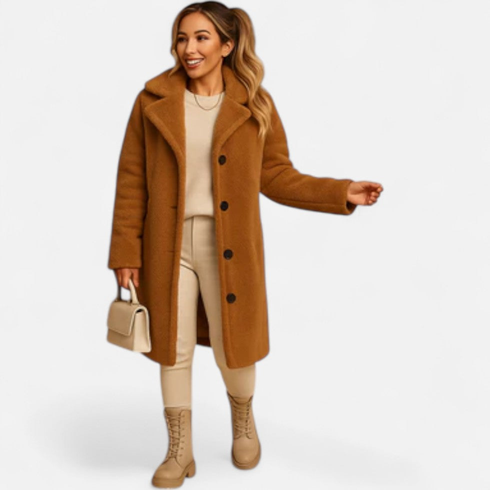 Langer Teddy Mantel Damen Kuscheliger Wintermantel