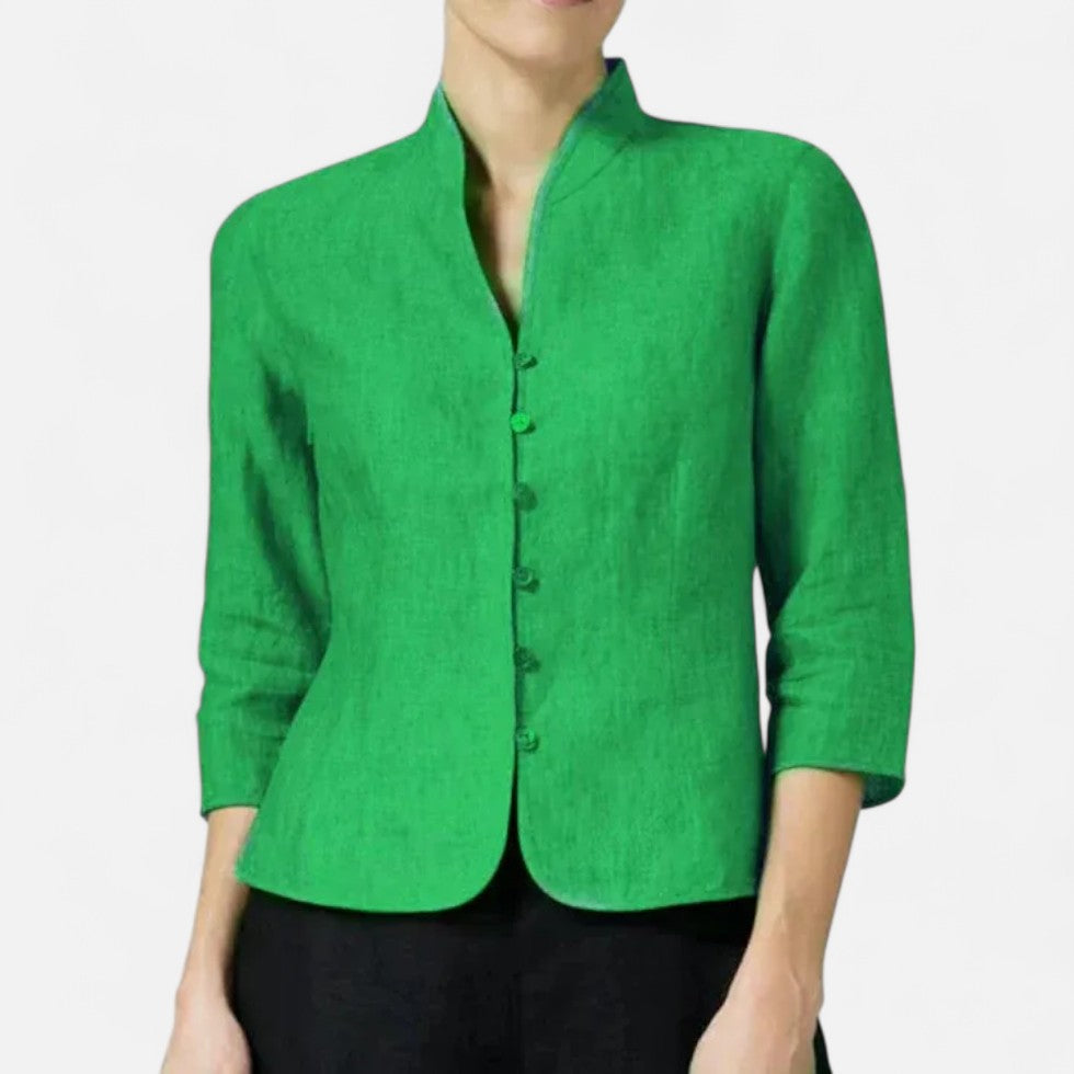 Diese leichte Leinenbluse überzeugt mit einem klaren, minimalistischen Design. Der weite Schnitt sorgt für angenehme Bewegungsfreiheit und macht sie ideal für Alltag, Büro oder Urlaub. Das atmungsaktive Material fühlt sich natürlich auf der Haut an und bietet ein frisches Tragegefühl – perfekt für sommerliche Outfits in schlichten Farben.