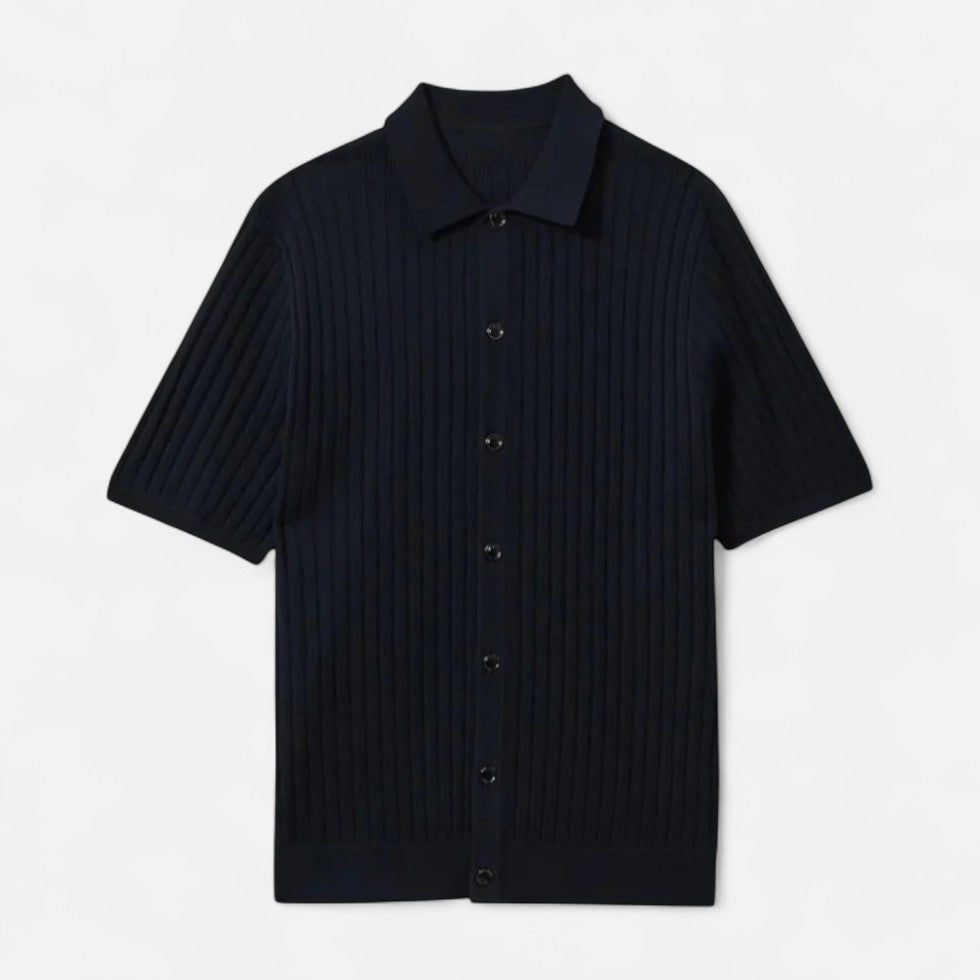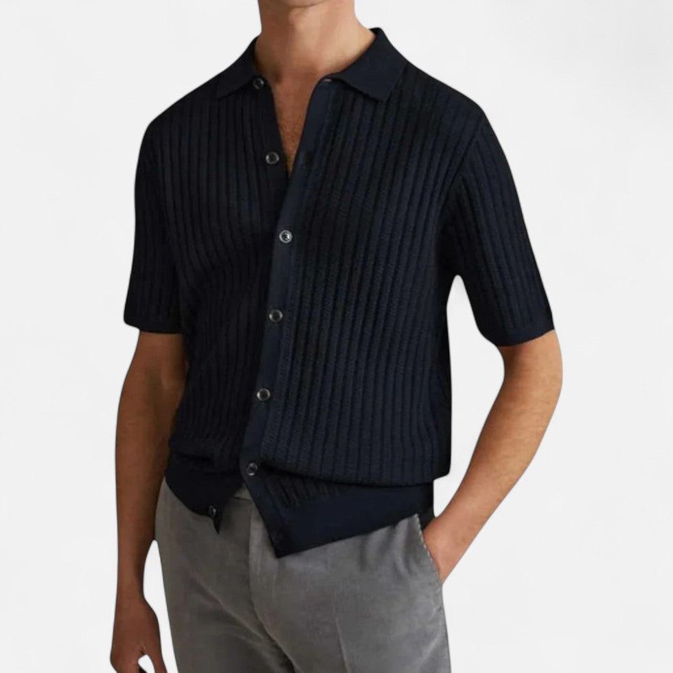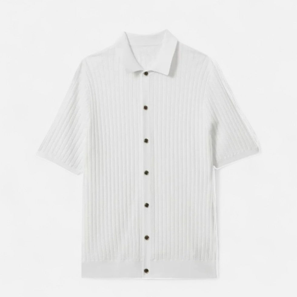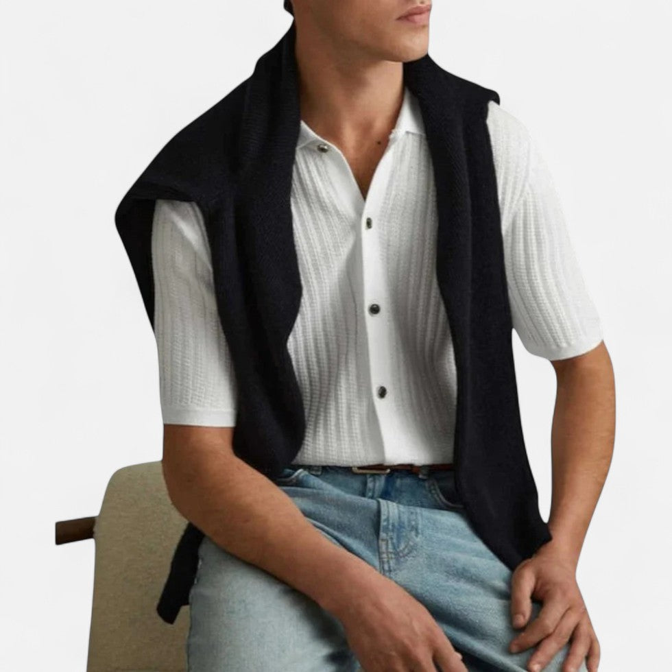 Dieses Strickhemd mit kurzen Ärmeln verbindet Eleganz mit entspannter Leichtigkeit. Das feine Strickmuster verleiht Struktur und Charakter, während die Knopfleiste einen modernen, gepflegten Look schafft. Ob für ein entspanntes Sommerdinner, ein Wochenende in der Stadt oder als smarter Alltagsbegleiter – dieses Hemd bietet die ideale Mischung aus Komfort und modischem Anspruch.